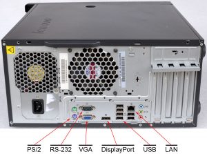 extern finden sich neben mehreren USB Typ A noch LAN, RS-232 und VGA