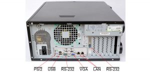 extern finden sich neben mehreren USB Typ A noch zwei LAN, zwei RS-232, PS/2 und ein VGA Anschluss