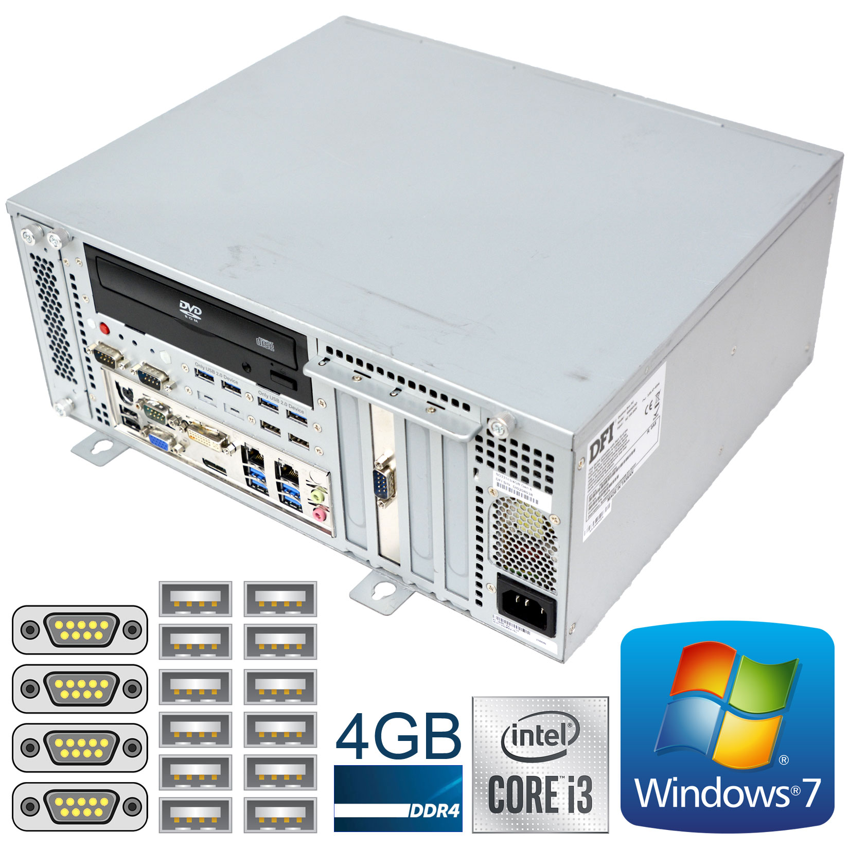 DFI Box-PC Computer WM3433-103G 12x USB 4x RS-232 2x GBit LAN i3 4GB 80GB M892