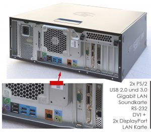 Front: 4× USB 3.0, 1× Audio-Out, Cardreader (SD & CF)