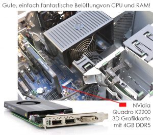 • 2× DisplayPort + 1× DVI (über NVIDIA Quadro K2200)