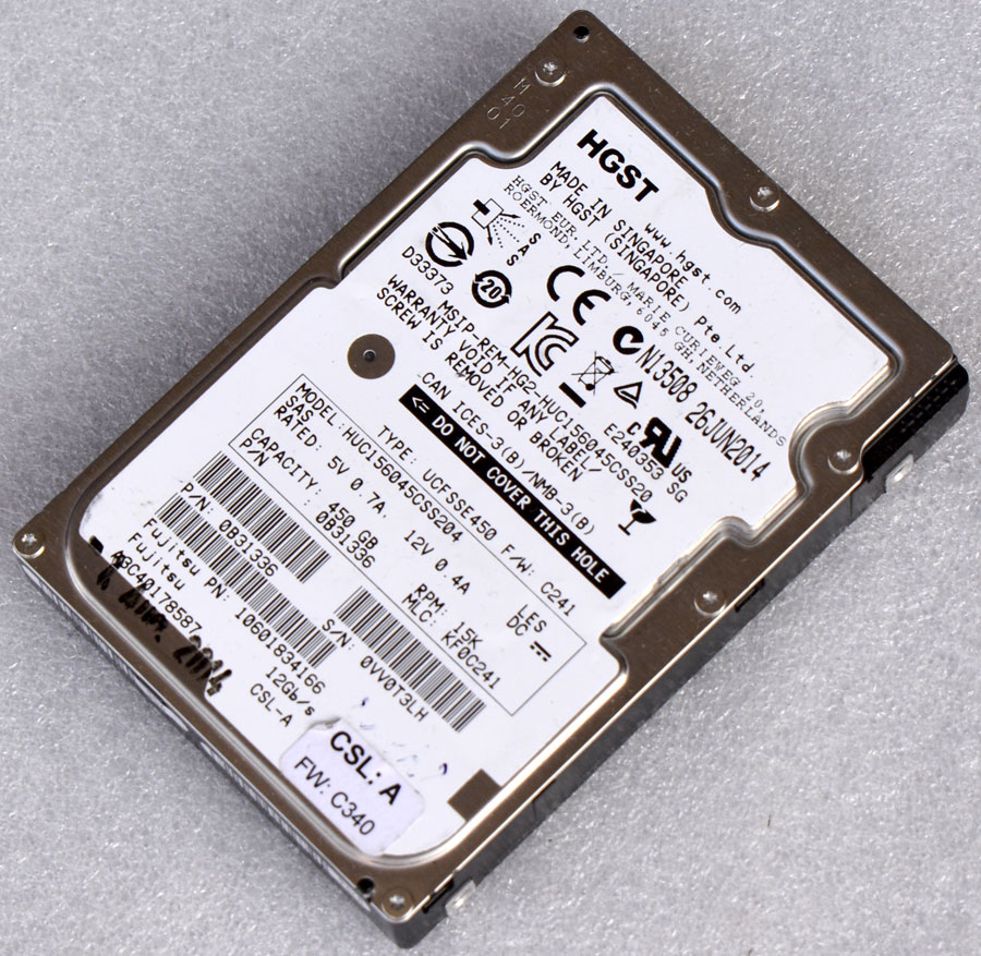 2,5″ 6,35cm SAS 12 Gb/s HDD HGST HUC156045CSS204 0B31336 450GB 128MB m1138