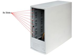 Kapazität: Bis zu 8x Laufwerke (SCSI HDD, ggf. auch andere kompatible Geräte)