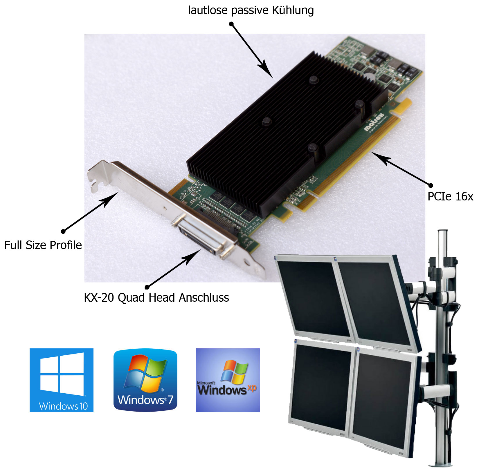 Matrox Quad Head Grafikkarte PCIe KX-20 für vier Monitore M9140-E512LAF M702