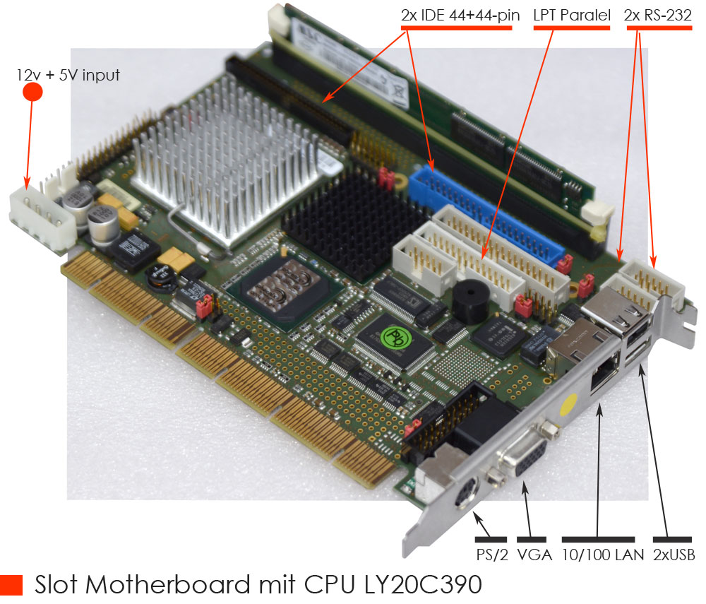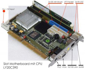 Ein industrielles Steuerungs-Slot-Motherboard LY20C390 inkl. 750 MHz VIA C3 Nehemiah CPU