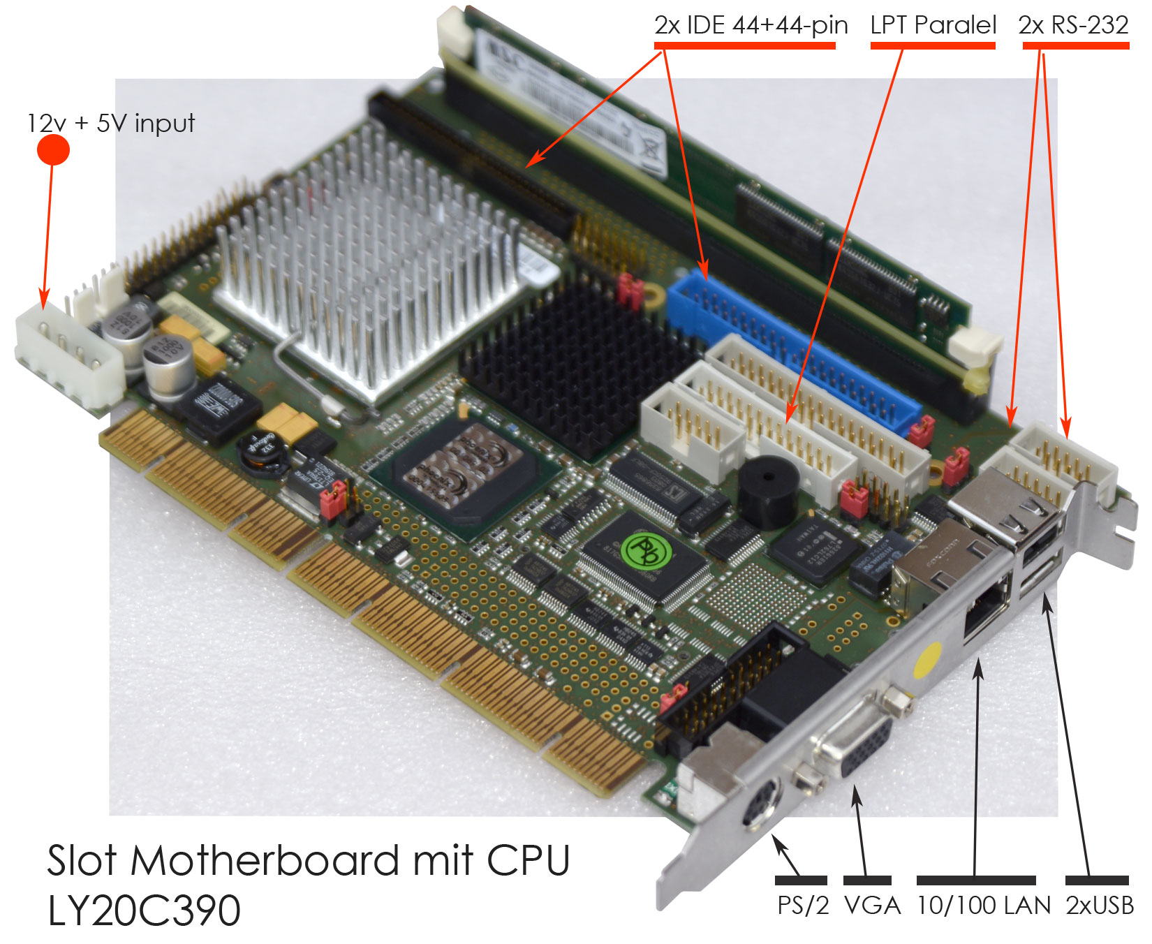 Slot Motherboard LY20C390 mit LPT Parallel RS-232 750MHz CPU VGA Netzwerk V742