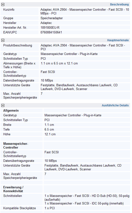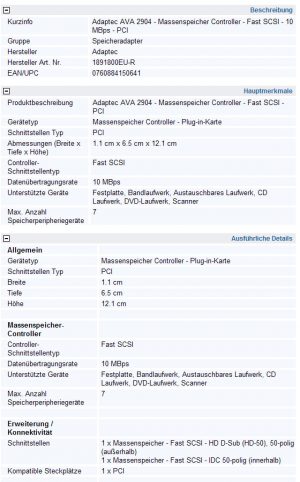 Bitte beachten Sie, dass die Adaptec AVA-2904 inzwischen vom Hersteller eingestellt wurde.