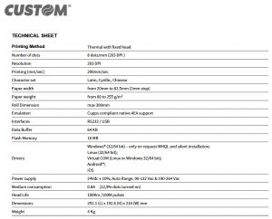 Custom TK202 – ist ein Barcodedrucker, Boardkarten- und Gepäcketiketten -Ticketdrucker der ein zuverlässiges und schnelles ausdrucken bei einer Druckgeschwindigkeit von mehr als 200 mm/ Sekunde ermöglicht, für Papierstärke bis 255 g/m² und Papierbreite 20 – 82,5 mm (2 mm Stufen), Einsatz: wie gesagt, als Airport (Gepäcketikettendrucker), Ticketdrucker und auch mehrere andere Einsätze