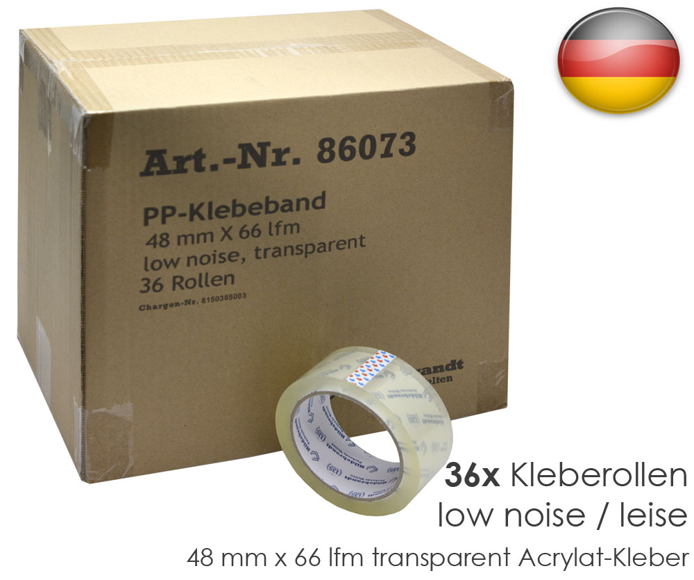 36x Rollen Transparend 66m PP Klebeband Packband Paketklebeband leise abrollend von “Hildebrandt Packende Welten”