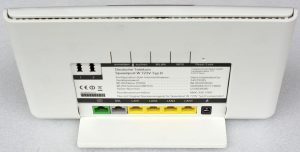 Telefonie: 1 analoger Telefonanschluss (TAE-Buchsen), Unterstützung von IP- und Festnetztelefonie (VoIP, Analog, ISDN über Splitter)