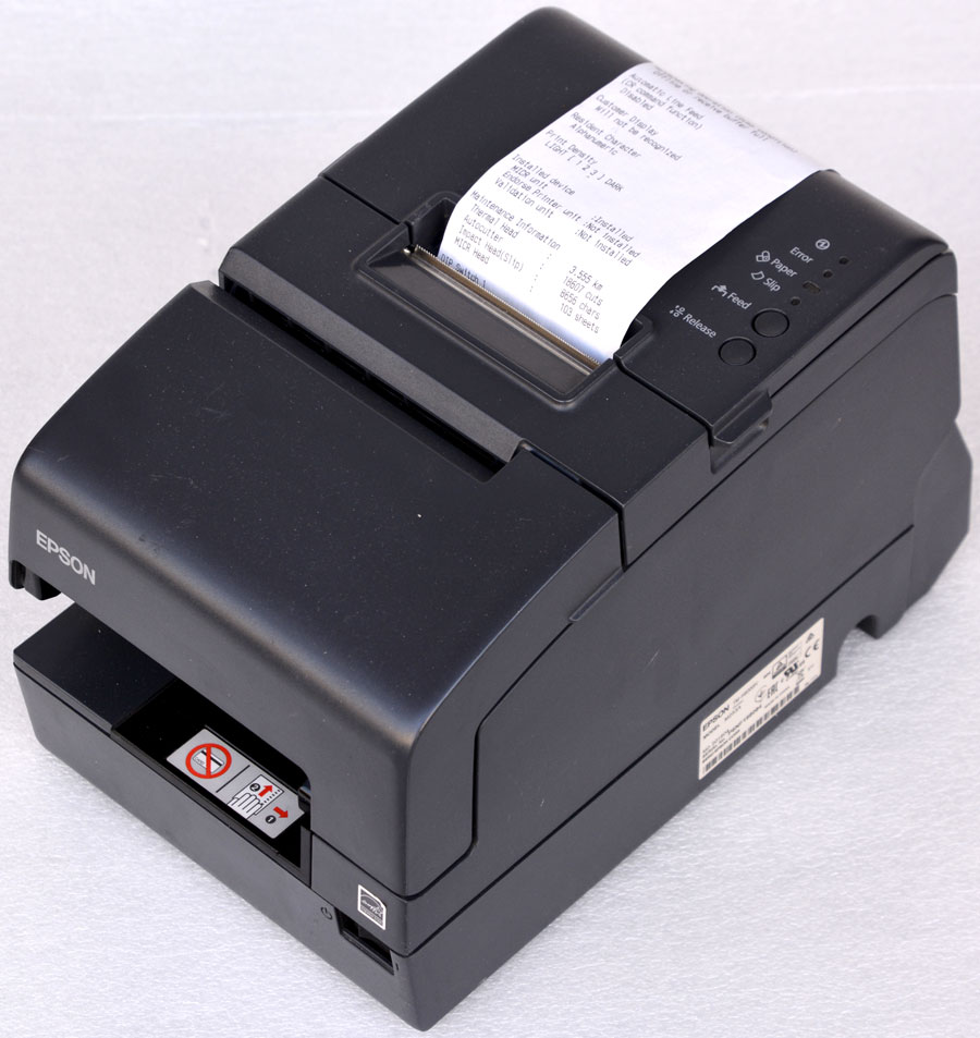 Multifunktionsdrucker: Thermodruck für Kassenbons, Nadeldruck für Belege (z. B. Mehrfachformulare), Check-Verarbeitung (inkl. MICR und Endorsement).