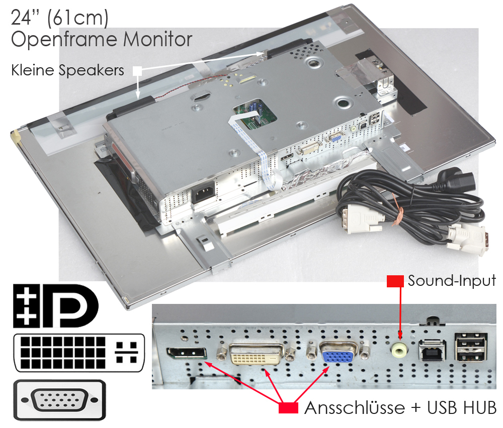 24″ 61CM OpenFrame Monitor VGA DVI DisplayPort 1920×1200 16:10 Boxen+USB 24-6