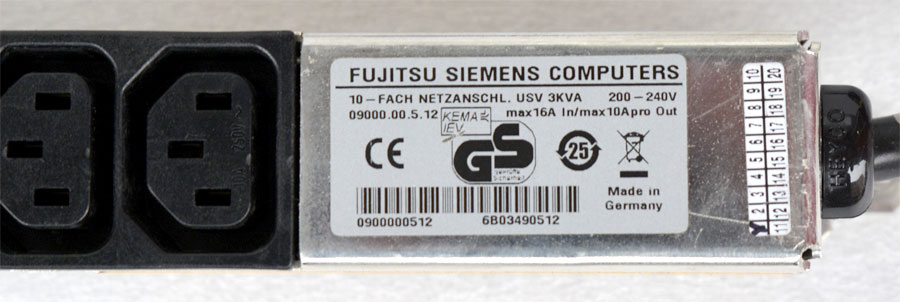 Fujitsu Siemens PDU Stromleiste 09000.00.5.12 C20 auf 10x C13 16A -> 10A m1398
