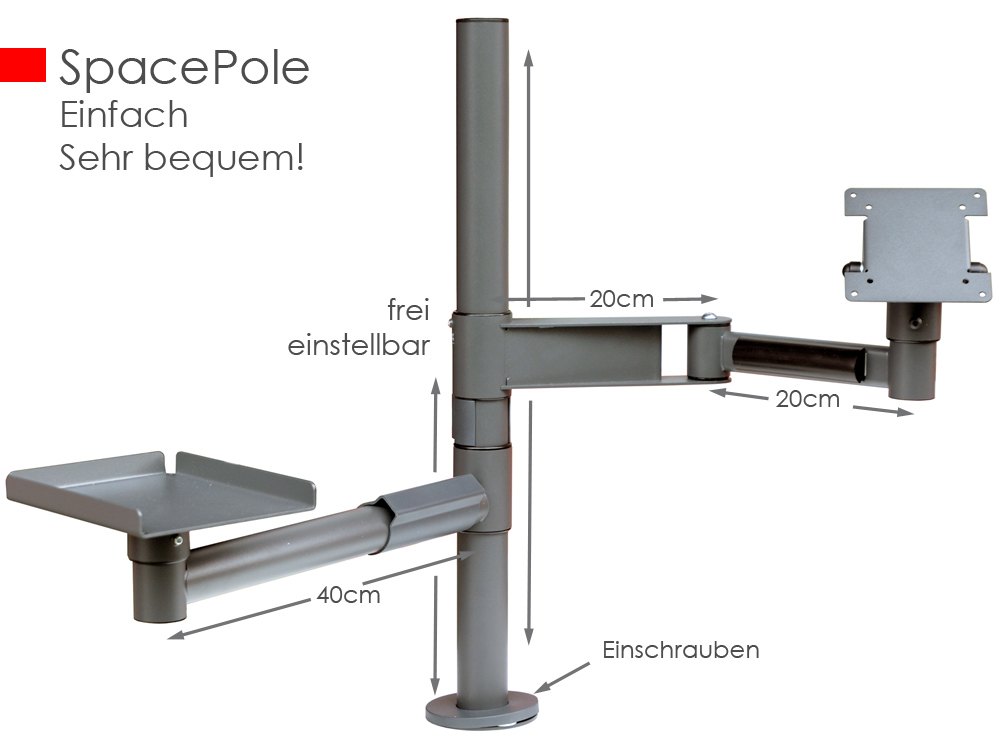 Hochwertiger Space Pole Monitorarm für Monitor und PC oder Drucker