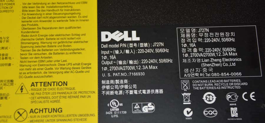 2700VA Dell R2700W J727N USV UPS 230V-250V mit neuen Akkus für 19″ 48cm Serverschränke
